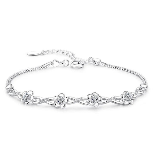 Luxury 925 Sterling Silver Purple and White Zircon Plum Flower Bracelet for Women Elegant Floral Jewelry Gift