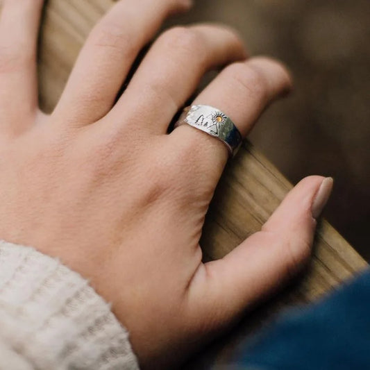 Vintage Sunset Valley Ring For Women Men Silver Color Punk Gothic Ring Unisex Accessories Handmade Designer Jewelry Lover Gift
