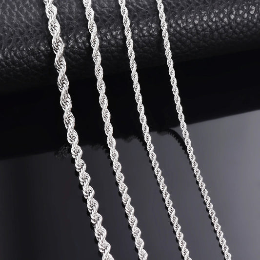 1 piece 925 sterling silver Width 2mm/3mm/4mm Rope Chain Necklace/Bracelet For Men Women Man Fashion Chain Necklace