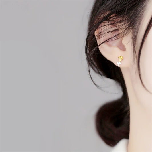 WYEAIIR 925 Sterling Silver Sweet Valentine's Day Gift Romantic Gilded Roses Fine Jewelry Luxury Female Earrings