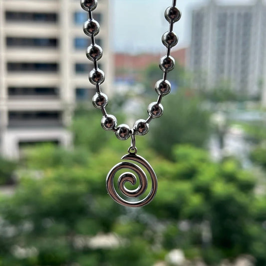 Y2K Stainless Steel Beads Chain Spiral Vortex Pendant Choker Necklace for Women Men Punk Grunge Aesthetic Necklace Jewelry