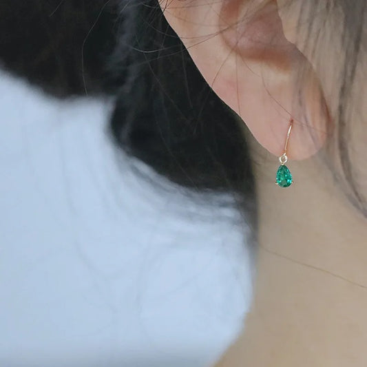 Women’s S925 Silver Green Zircon Water Drop Stud Earrings Jewelry