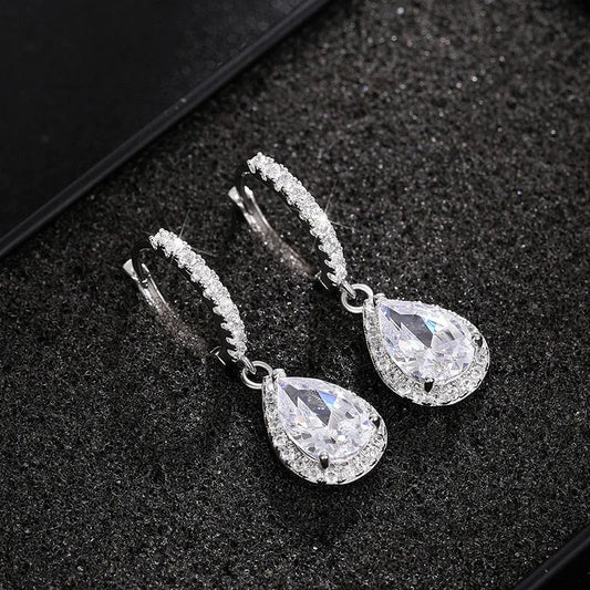 Women’s Silver Drop Earrings AAA Cubic Zirconia Engagement Jewelry