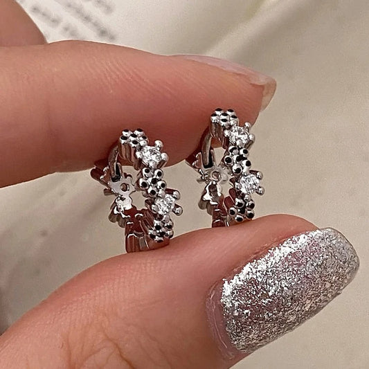 Women’s Silver Zircon Flower Round Hoop Earrings Cute Fine Jewelry