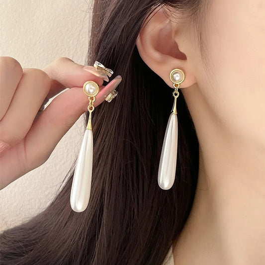Women’s Wedding Party Earrings Water Droplet Pearl Long Geometry Jewelry