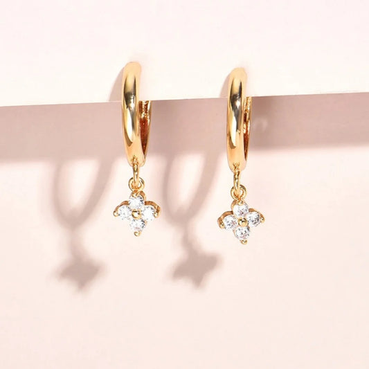 Women’s Vintage Zircon Stone Square Flower Hoop Earrings Gold Color