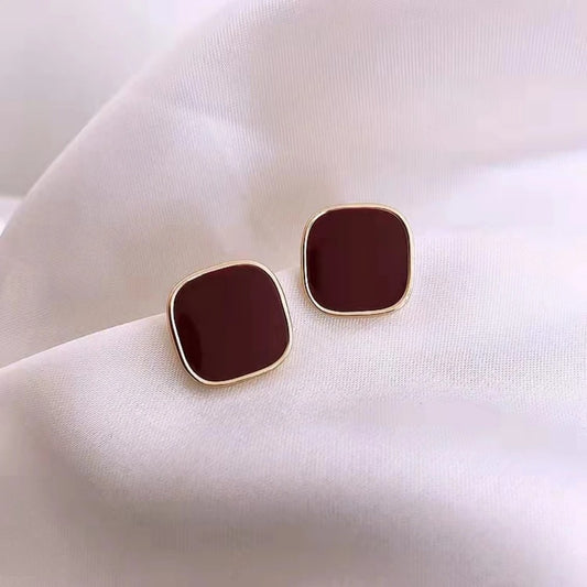 Women’s Wine Red Square Stud Earrings Korean Temperament Jewelry