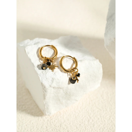 18K Gold Plated Hoop Earrings with Star Charms for Women