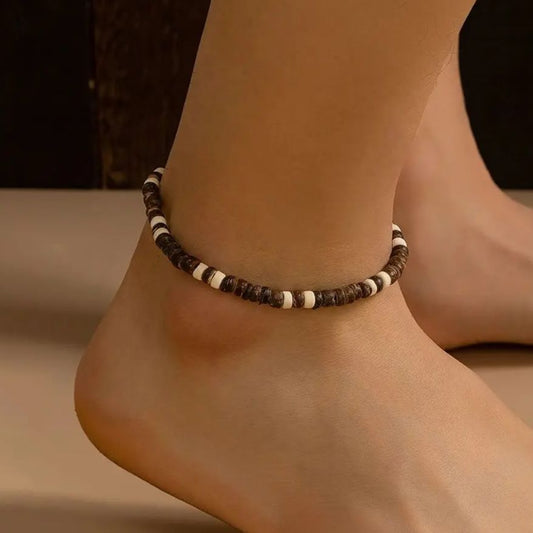 KunJoe Vintage Brown Wood Beads Anklets Chain for Men Ethnic Coconut Husk Foot Chain Summer Ankle Accessories Male Trend Jewelry