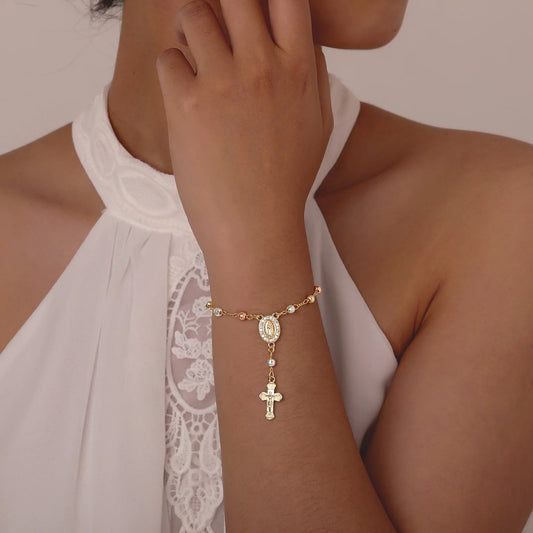 Catholic Cross Rosary Bracelet with Virgin Mary Charm – Baptism & Christening Gift for Women