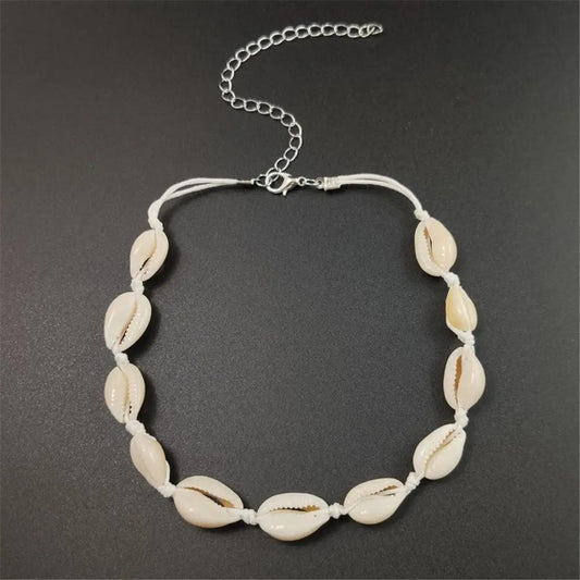 Boho Shell Pendant Necklace Handmade Braided Choker for Women