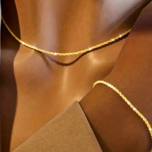 Shiny Clavicle Chain Necklace & Bracelet Set Women’s Party Jewelry