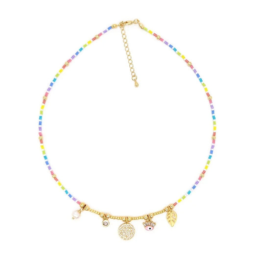 Leaf Pearl & Evil Eye Choker Boho Miyuki Bead Necklace for Women