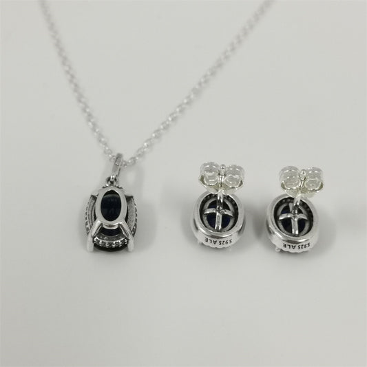 Pandora Black Sparkling Heart Halo Stud Earrings & Pendant Necklace Set – 45cm