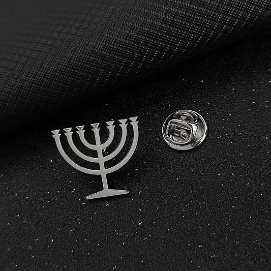Jewish menorah men's brooch stainless steel lapel pin suit shirt decoration accessories wedding groomsmen gift