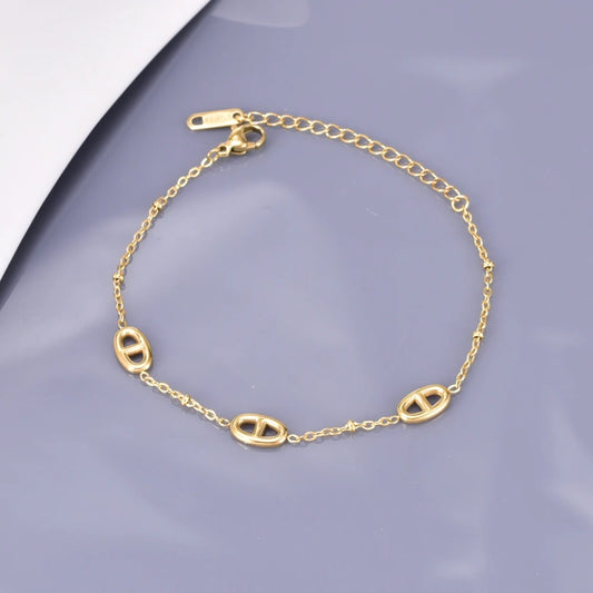 Gold-Plated Stainless Steel Bracelet Oval Charm Link Adjustable Clasp