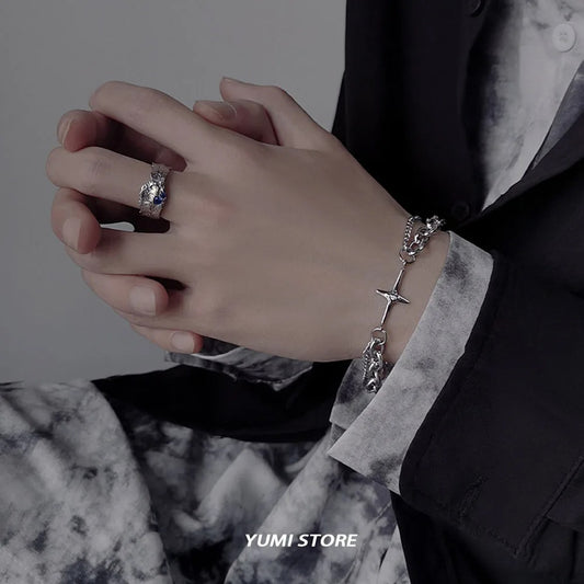 Titanium Steel Star Cross Bracelet Double Layer Hip Hop Unisex Jewelry