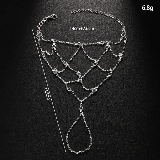 Round Rhinestone Mesh Slave Bracelet Hand Accessories Women 2025 Summer Beach Finger Chain Bracelet
