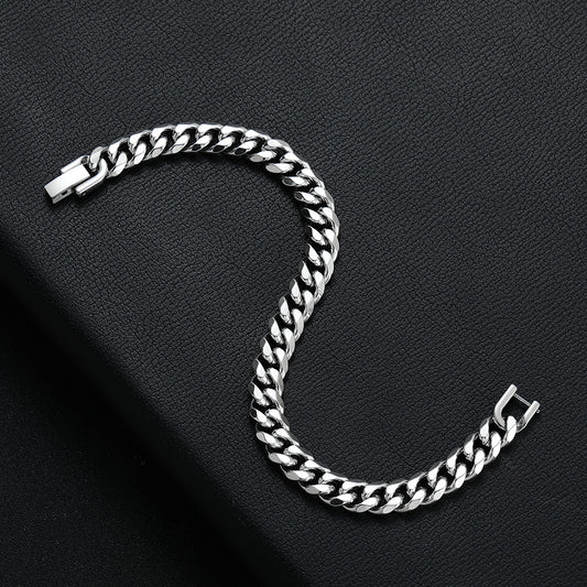 8MM 316L Titanium Steel Cuban Chain Bracelet Gold Black for Men Hip Hop