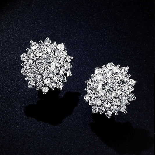 Luxury Gold Overspread Sparkly Rhinestone Clip on Earrings Round Flower Without Piercing for Women Wedding Party Jewelry