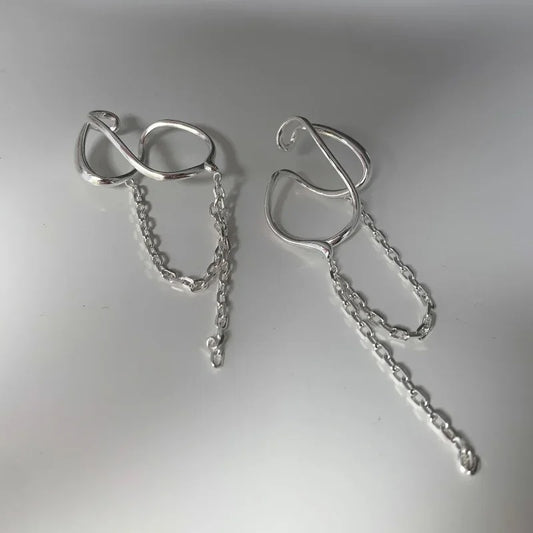 925 sterling silver Ear cuff without piercing For Women Chain Tassel Earring Jewelry Prevent Allergy Party