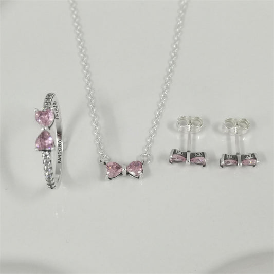 Pandora Sparkling Pink Bow Jewellery Gift Set – Necklace & Earrings in Sterling Silver