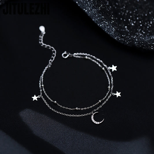 925 Sterling Silver Star & Moon Bracelet Double-Layer Women’s Jewelry