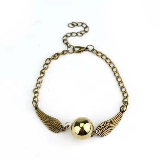 Golden Winged Ball & Owl Layered Bracelet Handmade Fantasy Jewelry