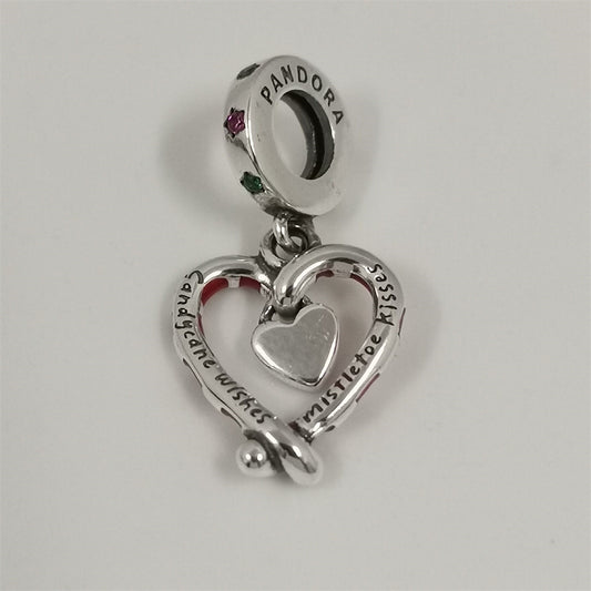 Pandora Double Candy Cane Heart Christmas Dangle Charm