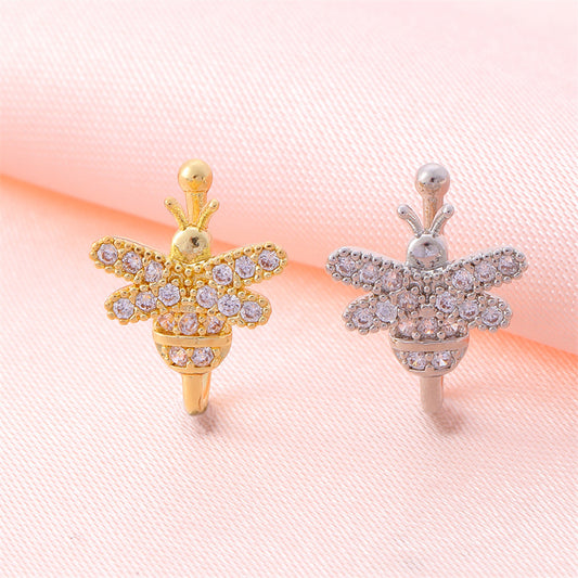 Clear Crystal Bee Nose Clip Cute Insect Fake Nose Ring Septum Cuff Fashion Non Piercing Body Jewelry Women Girls Accessory
