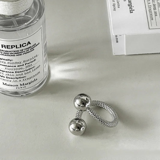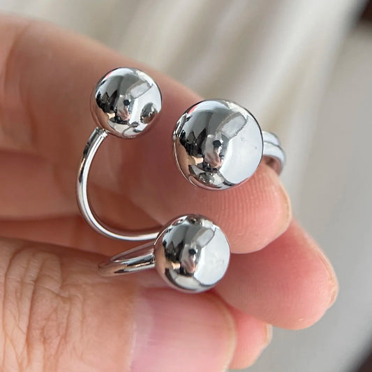 925 Sterling Rings for Women Fashion Geometric Handmade Irregular Double Balls Ring Party Christmas Gift