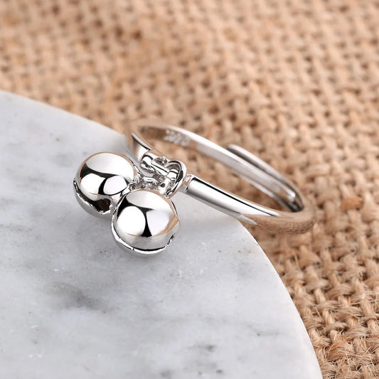 925 Sterling Silver Rings For Women trendy 2 bells fine Jewelry Beautiful Finger Open Ring For Party Birthday Gift