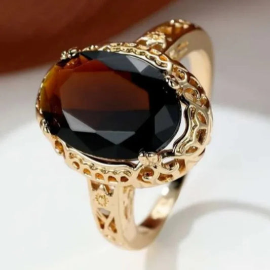 Exquisite Black Color Oval Hollow Red Black Stone Rings for Women Jewelry Anniversary Rings Set Gift