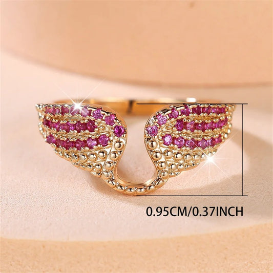 Rose Red CZ Angel Wings Ring Gold & Silver Women’s Jewelry