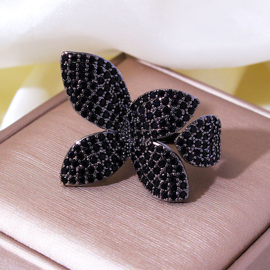 New Fashion Luxury Cubic Zirconia Women's Rings Oversized Butterfly Flower Rings for Women Open Resizable Female Engagement Ring