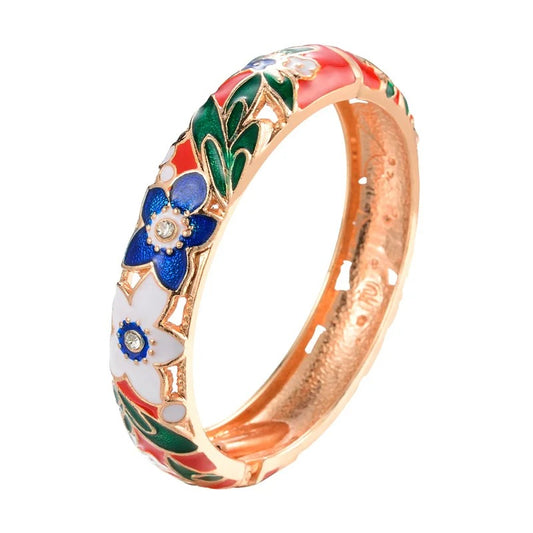 Women’s Enameled Flower Bracelet African Indian Chinese Jewelry