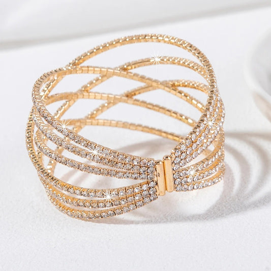 6 Layer Rhinestone cuff Bracelet Elastic Metal bangle Women