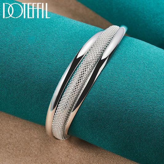 925 Sterling Silver Geometric Open Bracelet Luxury Women’s Jewelry