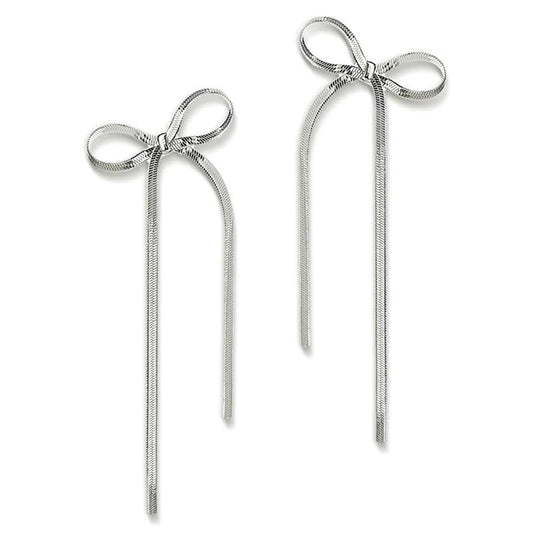 Minimalist Bowknot Snake Chain Tassel Earrings Stainless Steel