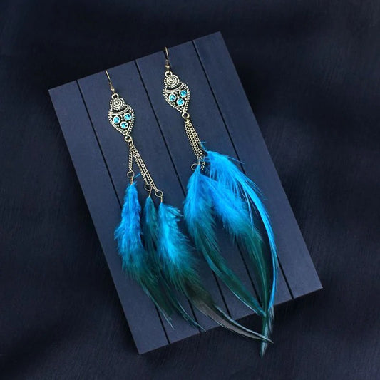 Long Feather Dangle Earrings Gold Vintage Women Handmade