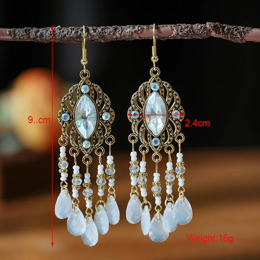 Ethnic Boho Crystal Tassel Drop Earrings Handmade for Women