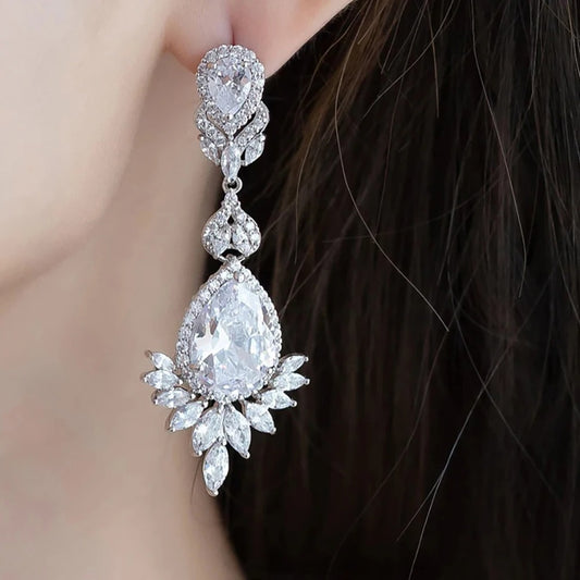 Earrings Feather Long Drop Dangle Earrings For Women Cubic Jewelry Fashion Gift