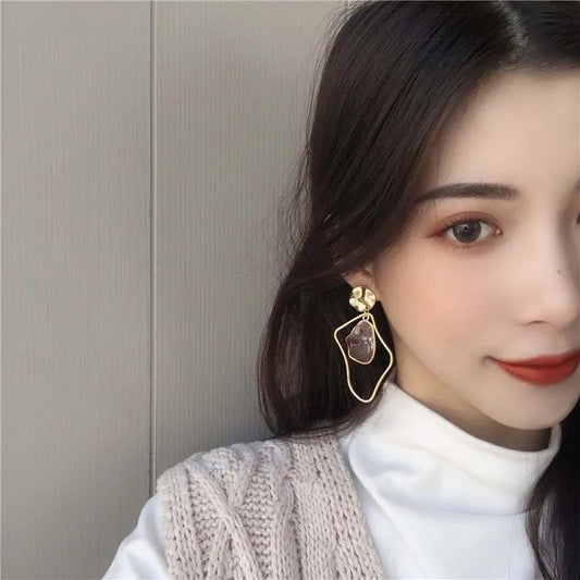 Korean Style Resin Earrings Women Imitation Stone Contrast Jewelry
