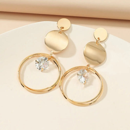 2 Pieces Gold Alloy Circular Pendant Earrings – Elegant Women’s Fashion Jewelry