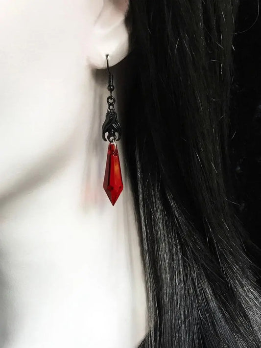 Gothic Black Earrings Red Teardrop Beads Bat Lover Alternative Jewelry