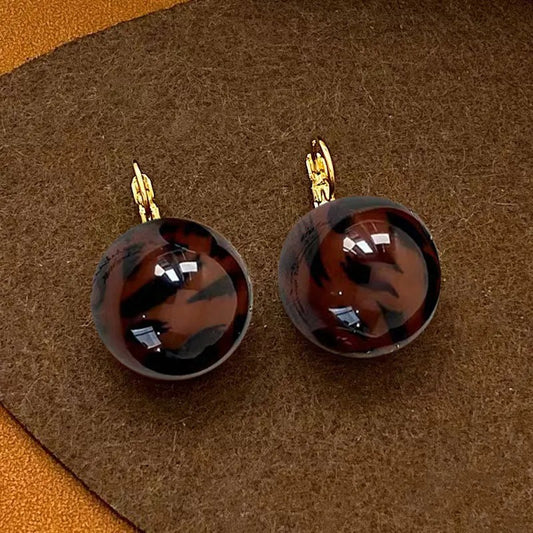 New Vintage Leopard Print Round Ball Earrings for Women French Unique Multicolor Resin Ear Buckles Party Daily Unusual Jewelry