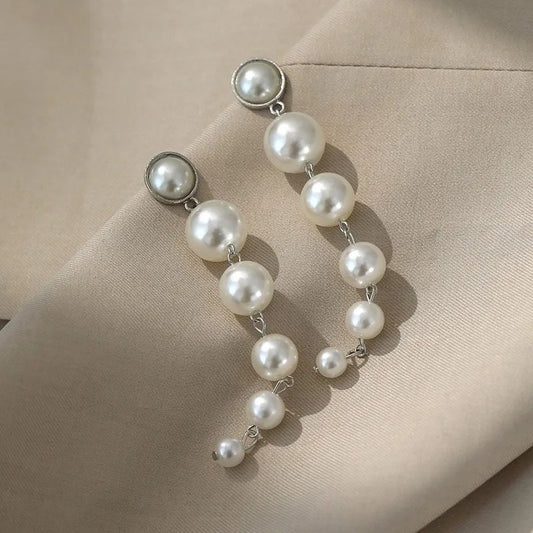 Chunky Pearl Long Dangle Earrings for Women Vintage Statement Jewelry