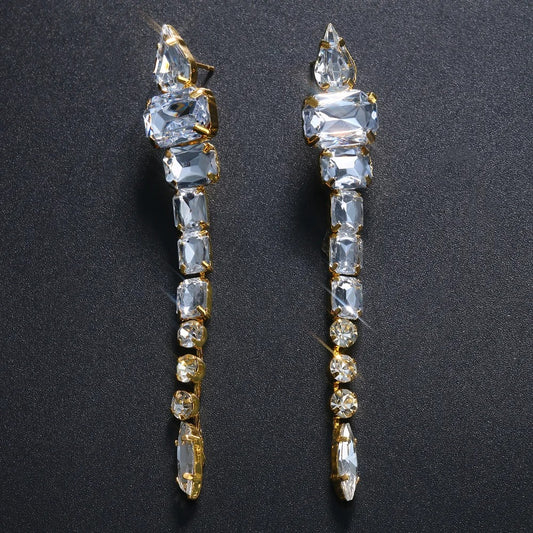 Square Long Crystal Dangle Earrings for Women Geometric Rhinestone Jewelry Gift