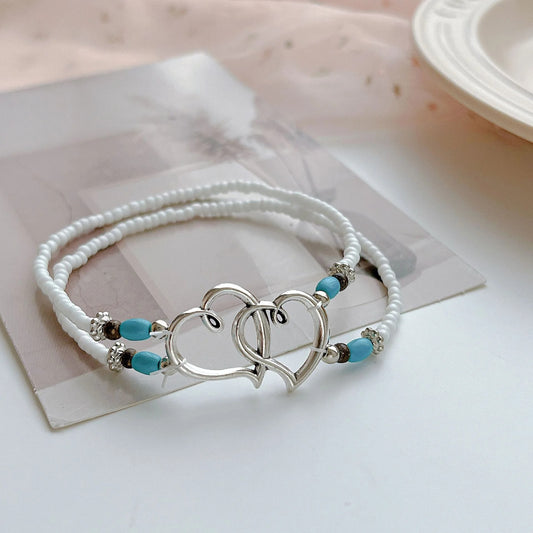 Summer Beach Boho Double Heart Anklets for Women Fashion Shell Starfish Ankle Bracelet on Leg Barefoot Handcraft Chain Jewelry