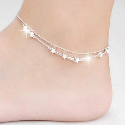 New Trendy 925 Sterling Silver Anklets For Women Cute Star Ankle Chain Bracelet Foot Jewelry Girl Beach Party Accessories